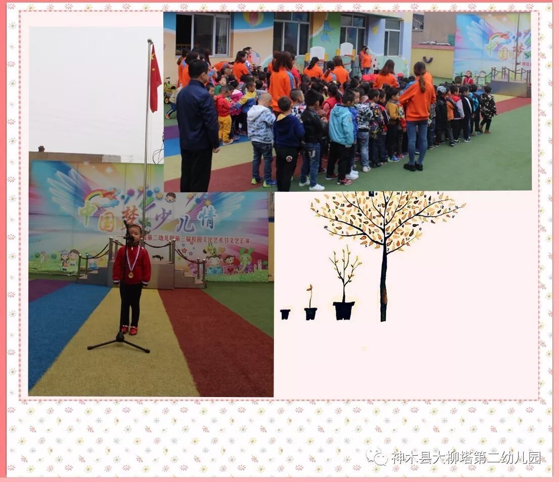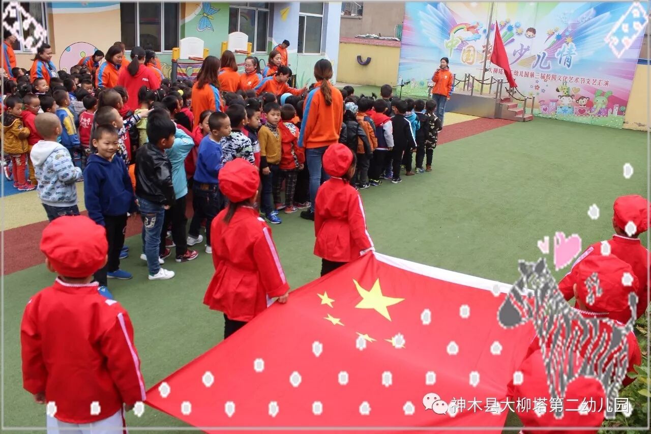 2017年10月16日上午,大柳塔第二幼儿园举行了幼儿升旗仪式。由于天气渐冷,升旗仪式于幼儿早操活动前开始。